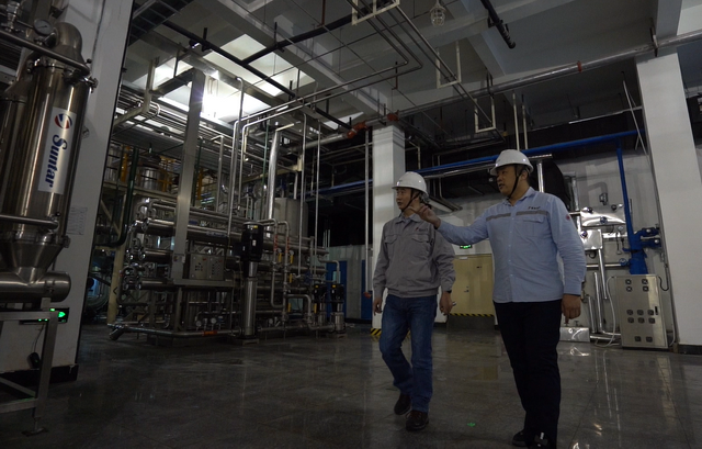 不仅在生物技术上勇攀高峰,尊龙生化人还主动向柔性生产发起挑战——他们没有选择新建生产线,而是对原有的苏氨酸生产线进行改造,使其能够生产两种氨基酸,从而既节省投资,又能够灵活地调整产能,适应市场需求。